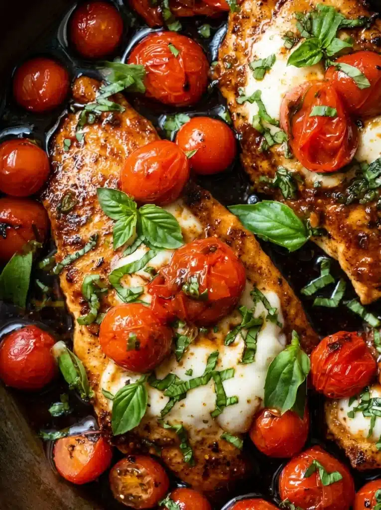 • Resting the chicken is essential for juicy One-Pan Chicken Bruschetta with Balsamic Glaze.